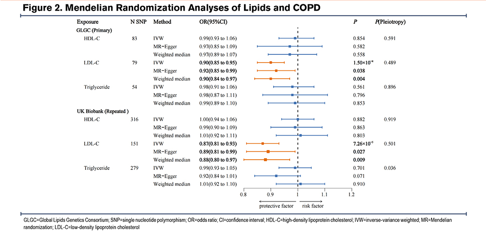Citation: Jia G, Guo T, Liu L, He C. Lipids, lipid-lowering drug target genes and COPD risk: a Mendelian randomization study. Chronic Obstr Pulm Dis. 2025; 12(6): 512-521. doi: http://doi.org/10.15326/jcopdf.2025.0632